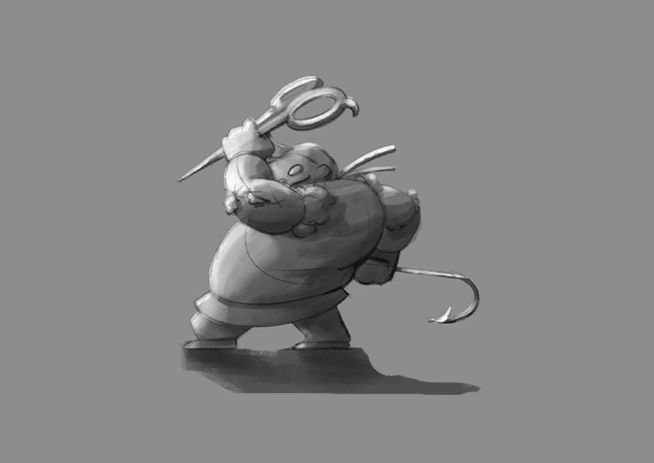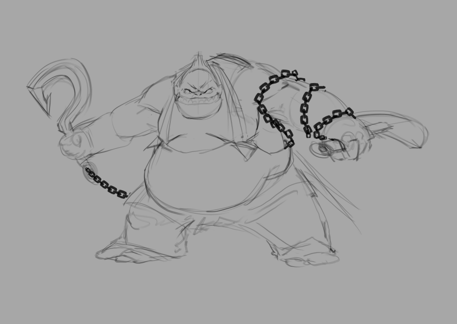 Early sketch concepts to establish a visual style for our Pudge and Persona.
